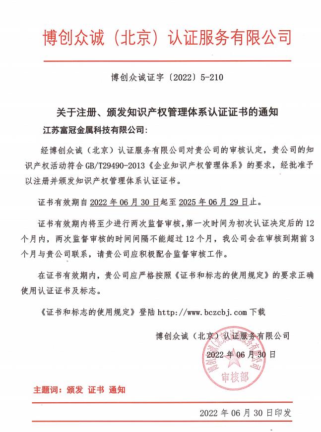 江蘇富冠金屬科技有限公司